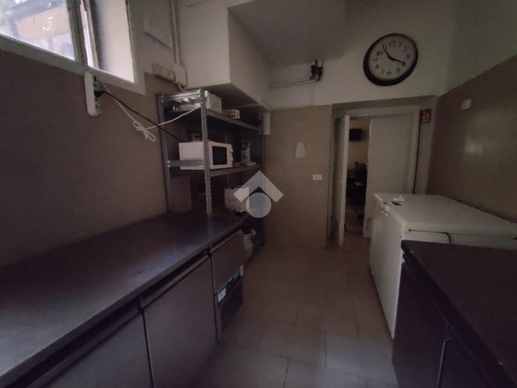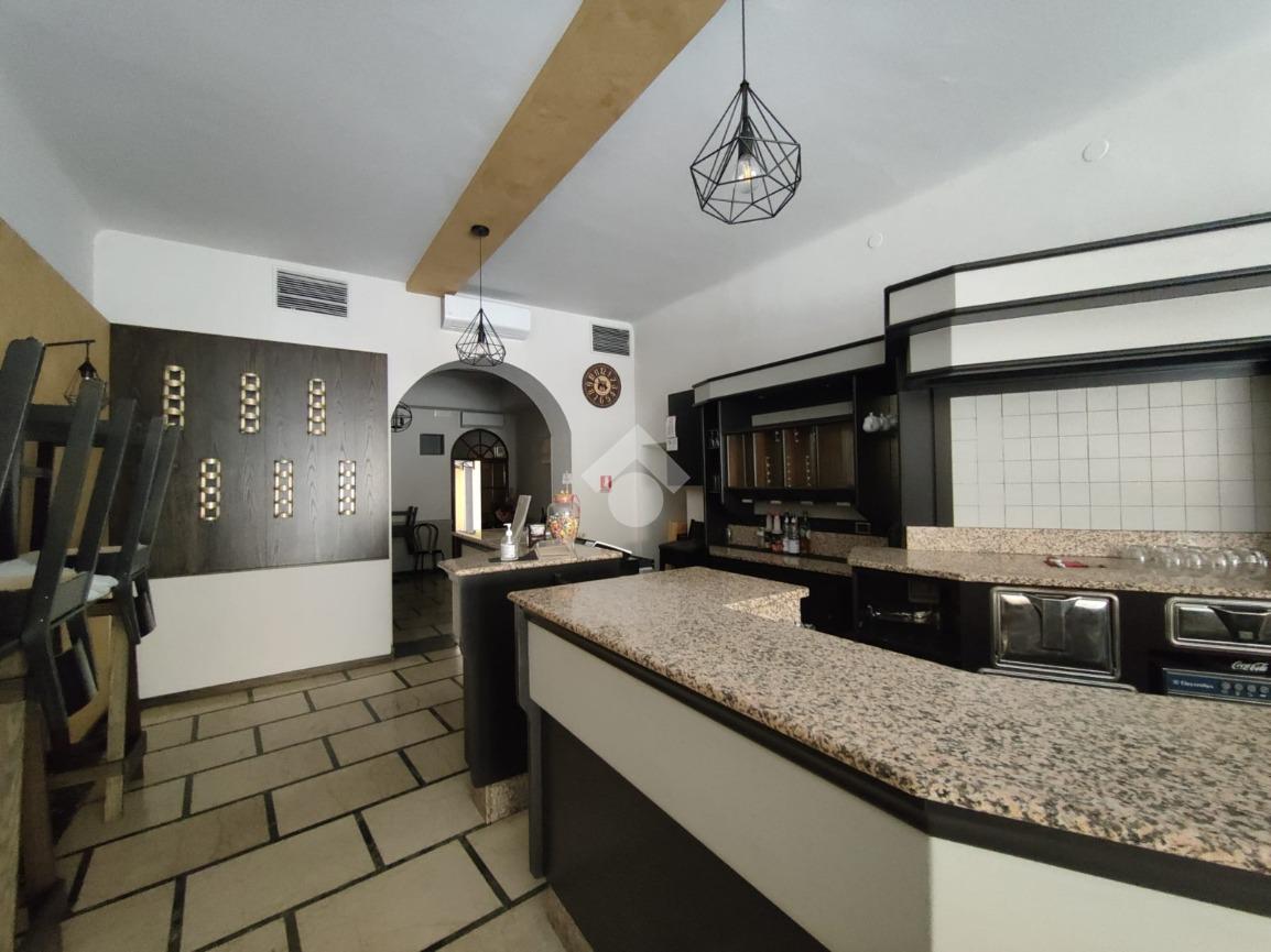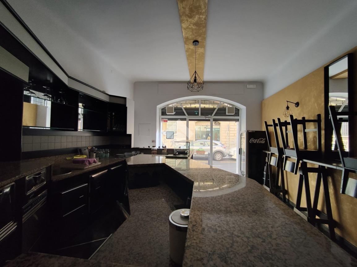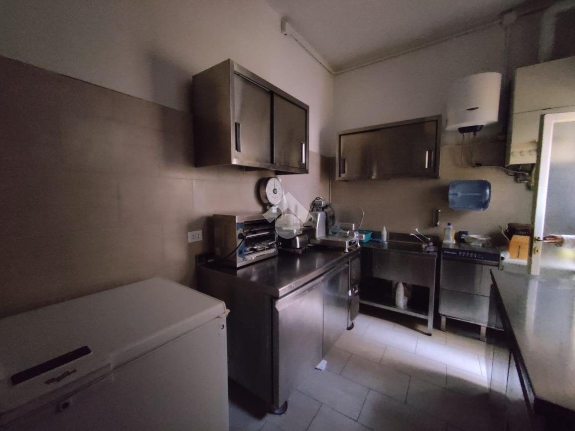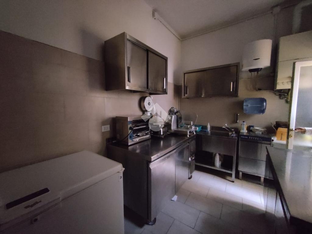 L'immobile è composto da un locale pricipale, una saletta sul retro, una cucina attrezzata e due servizi igienici.