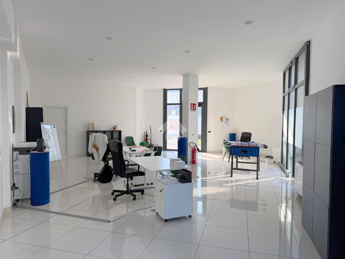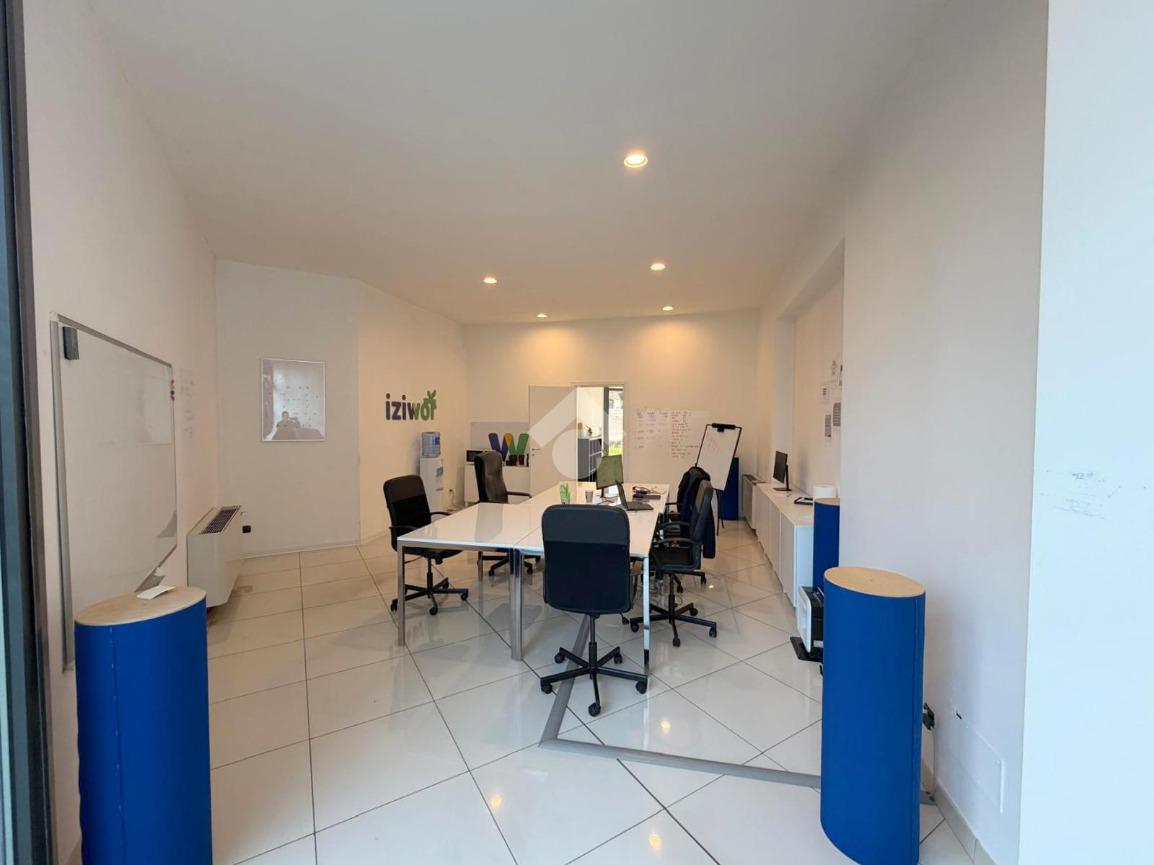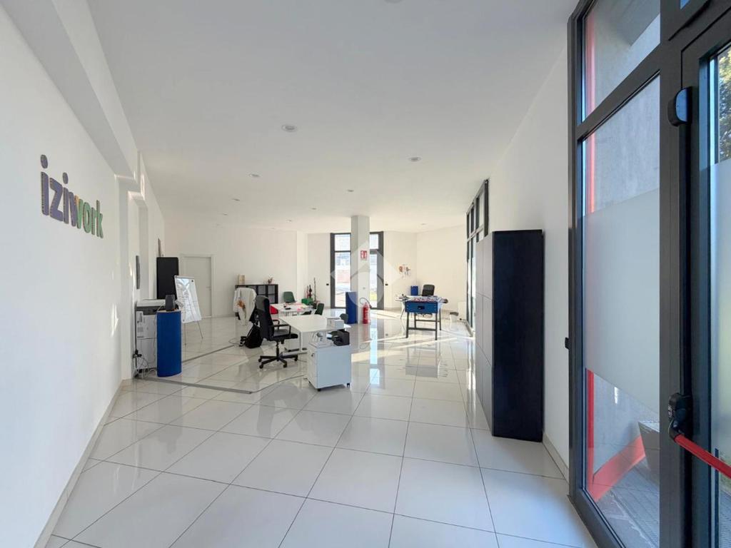 L'immobile è composto da un ampio open space, due uffici vetrinati sul retro e due servizi igienici, di cui uno a norma per persone con disabilità.