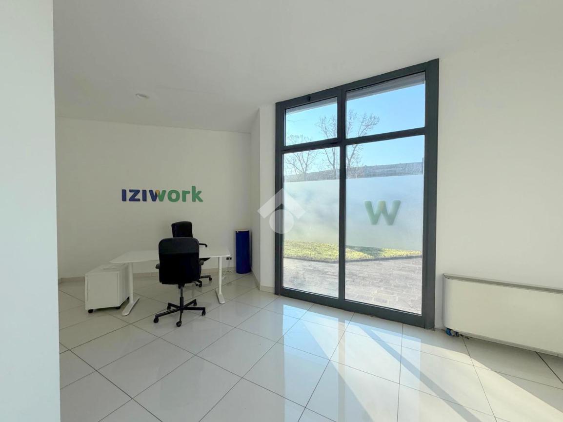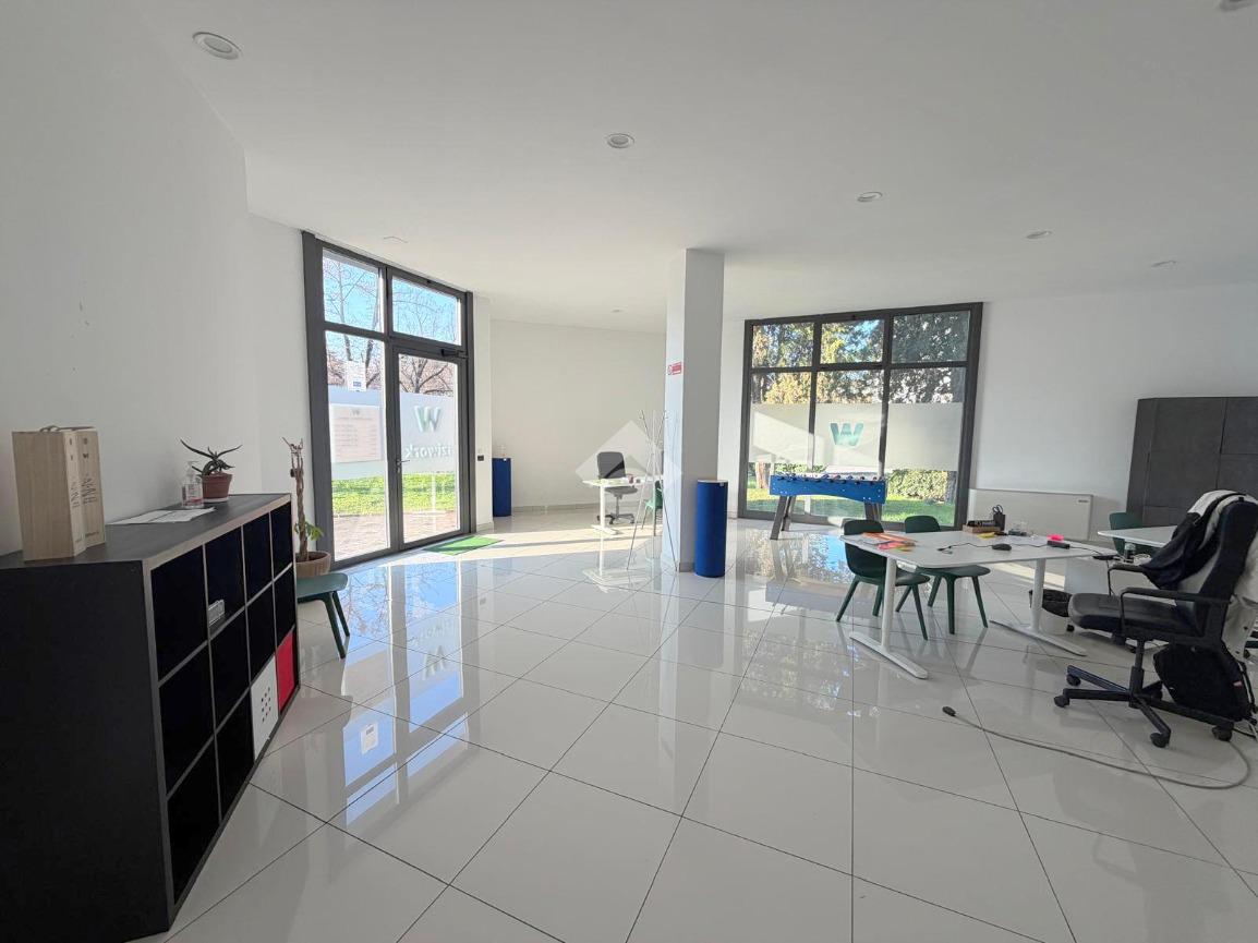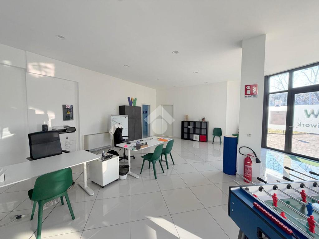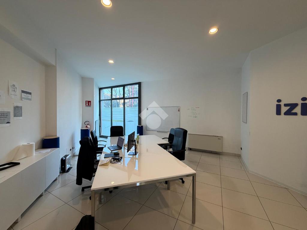 L'immobile è composto da un ampio open space, due uffici vetrinati sul retro e due servizi igienici, di cui uno a norma per persone con disabilità.