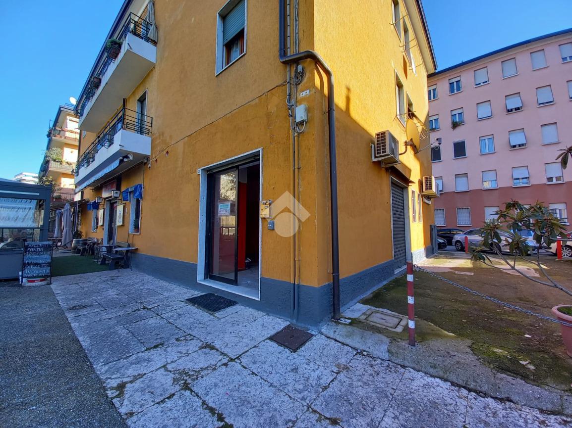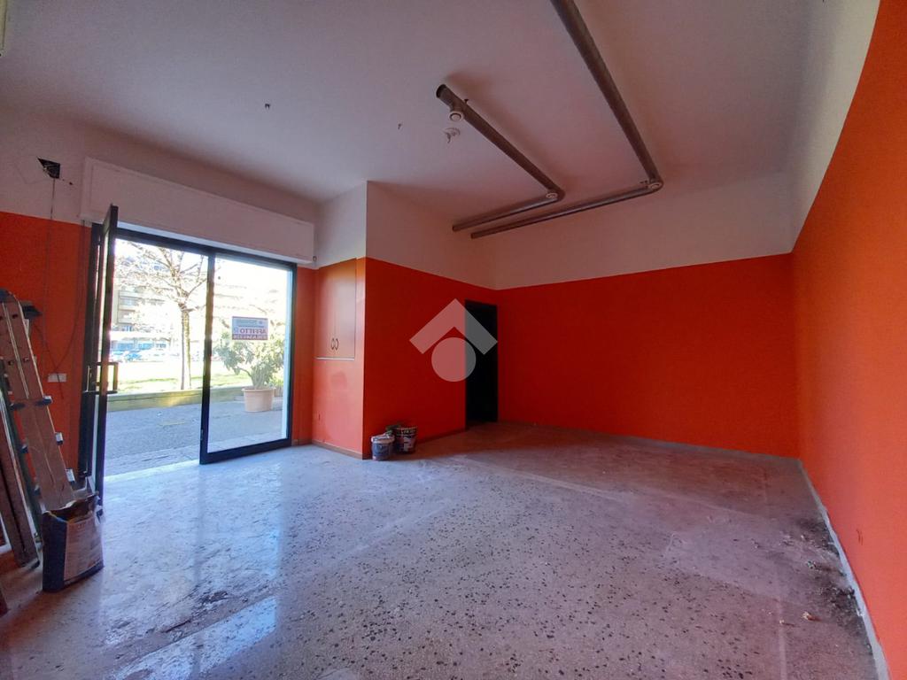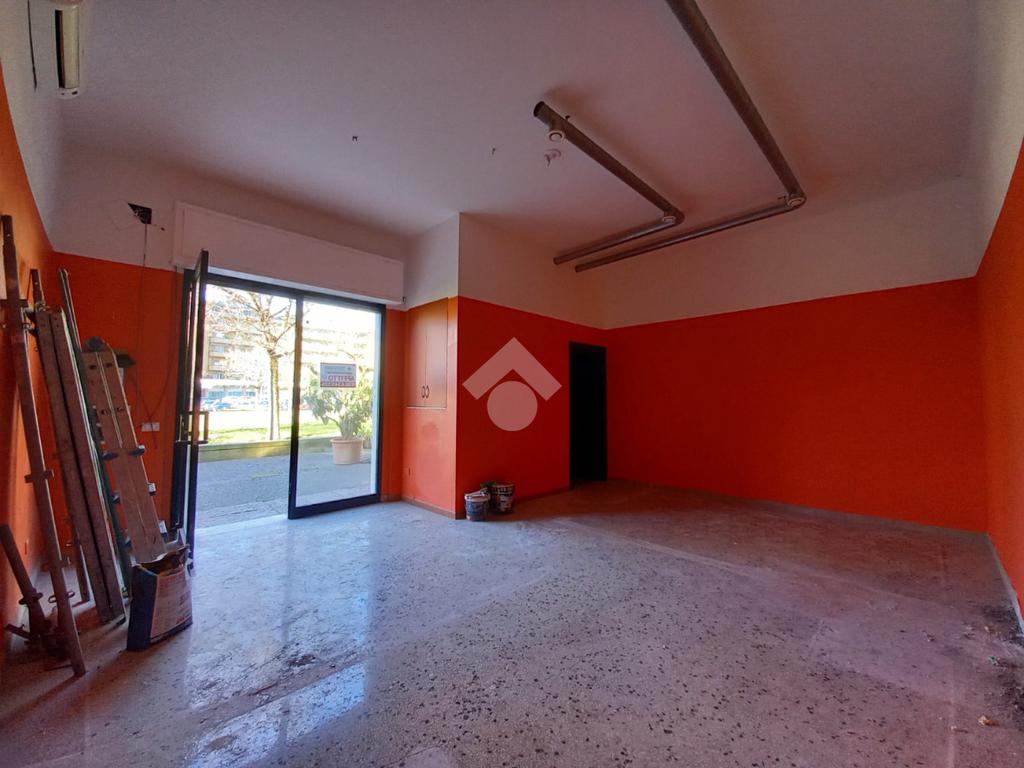 La soluzione è attualmente open space e gode di posizione angolare, con due lati vetrinati che conferiscono grande luminosità al locale.