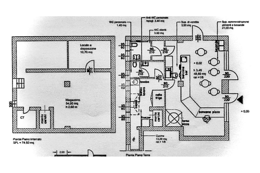 L'immobile vanta una superficie totale di 150 mq, di cui MQ 75 al piano terra, adibiti a ristorante pizzeria, con forno per pizze, banco bar, una cucina parzialmente atrezzata, 2 bagni di cui uno a norma, il tutto reso molto luminoso dalle 3 ampie vetrine fronte strada.