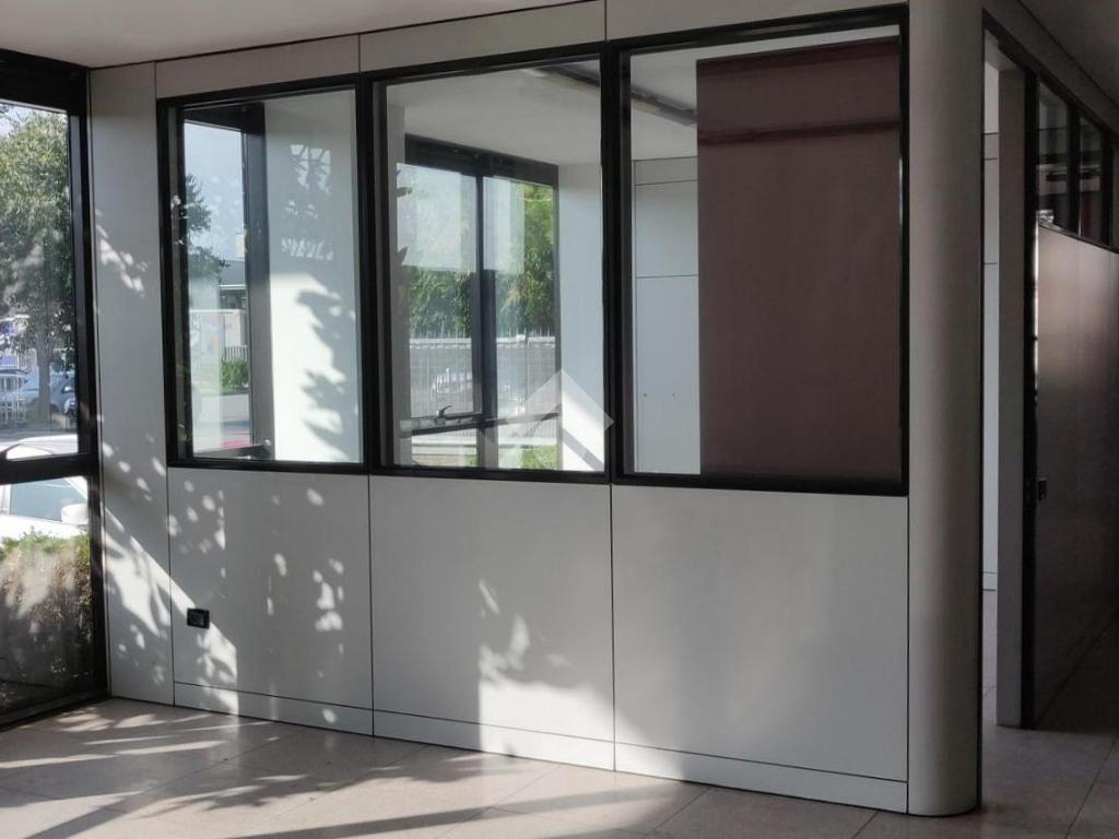 L'immobile si distingue per la sua facciata vetrata di rappresentanza, che dona luminosità naturale agli ambienti e conferisce un'immagine professionale e contemporanea.