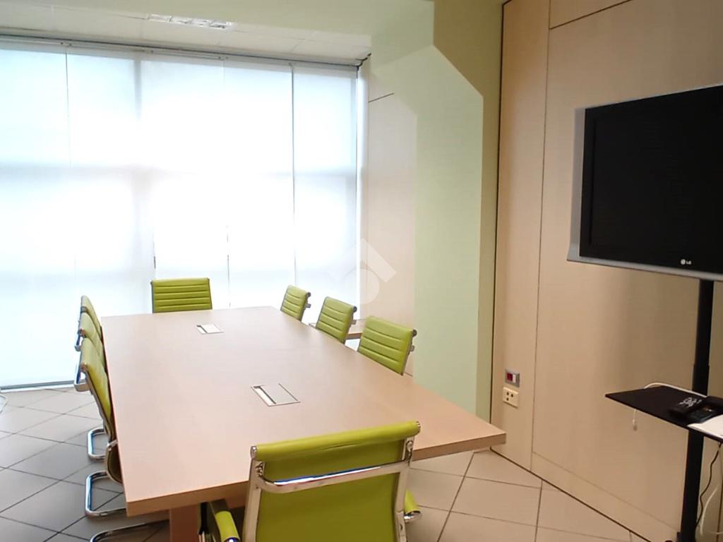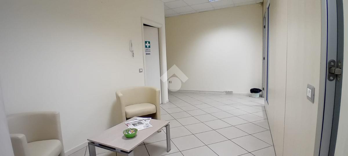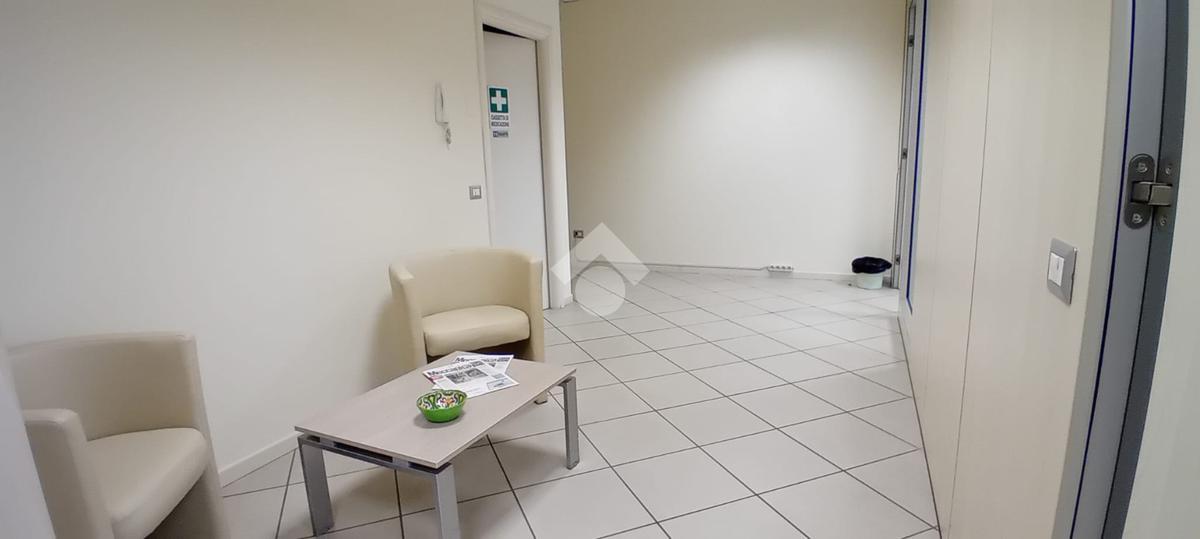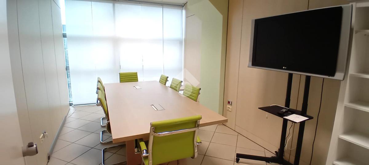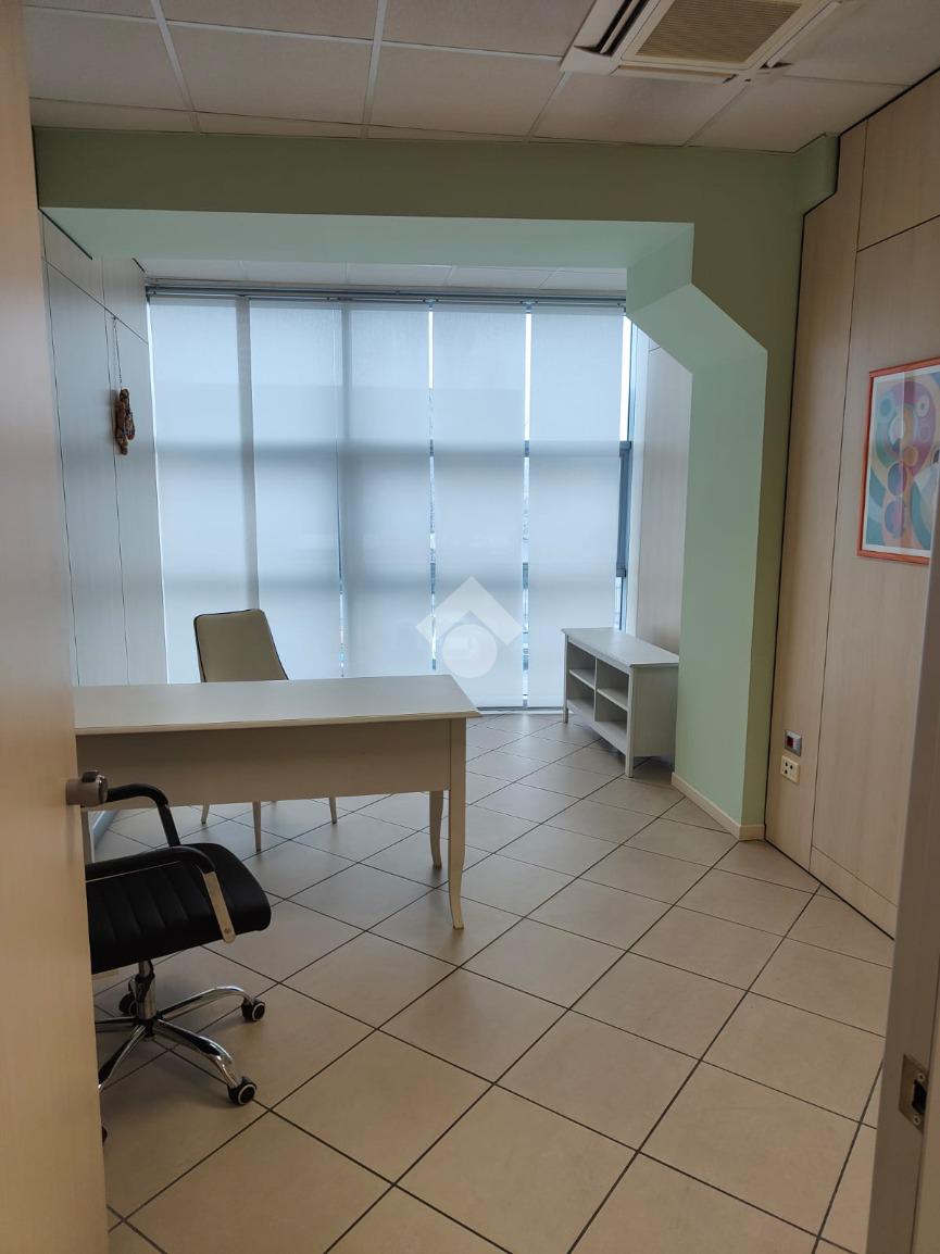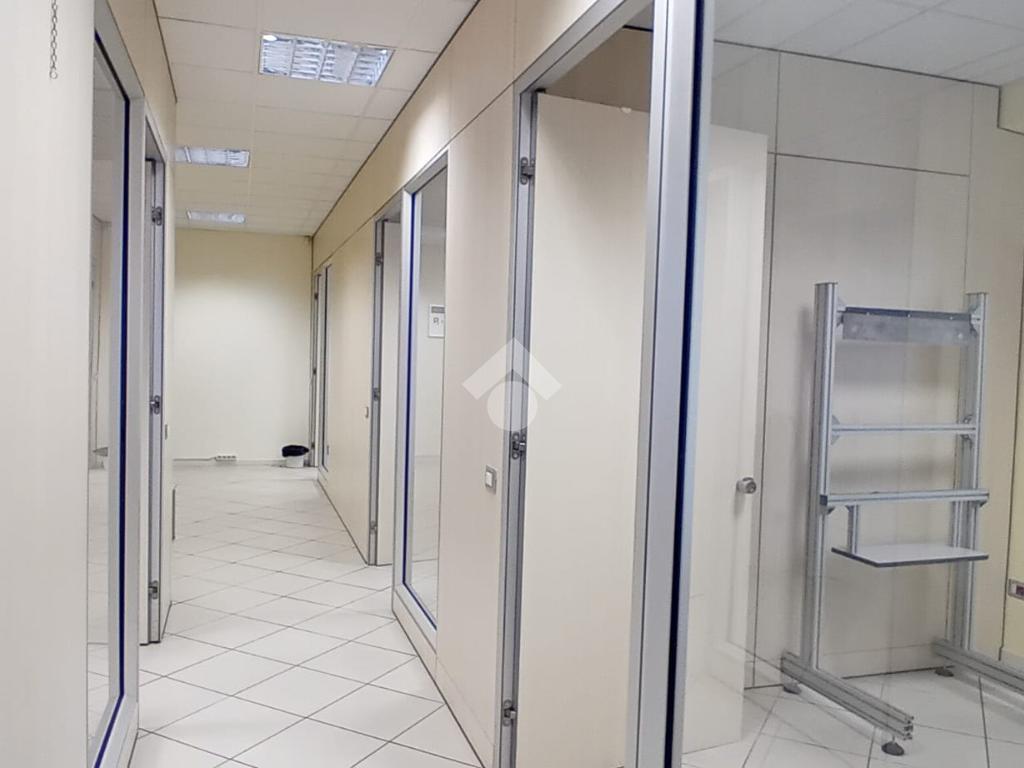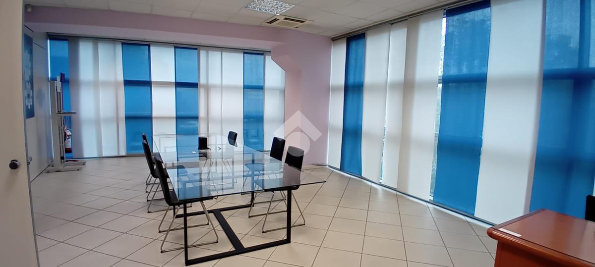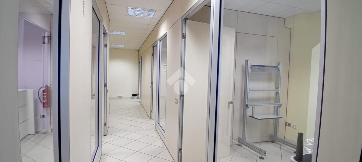 Ingresso nell'area reception, il corridoio collega i quattro ampi uffici e la sala riunioni. Servizio igienico con antibagno.