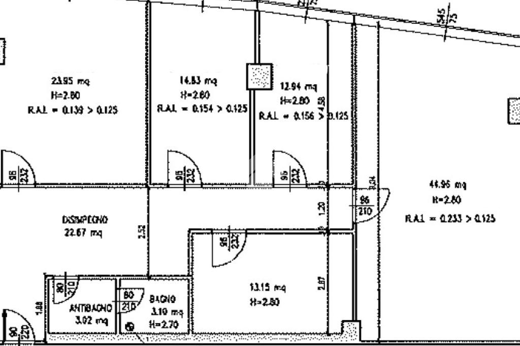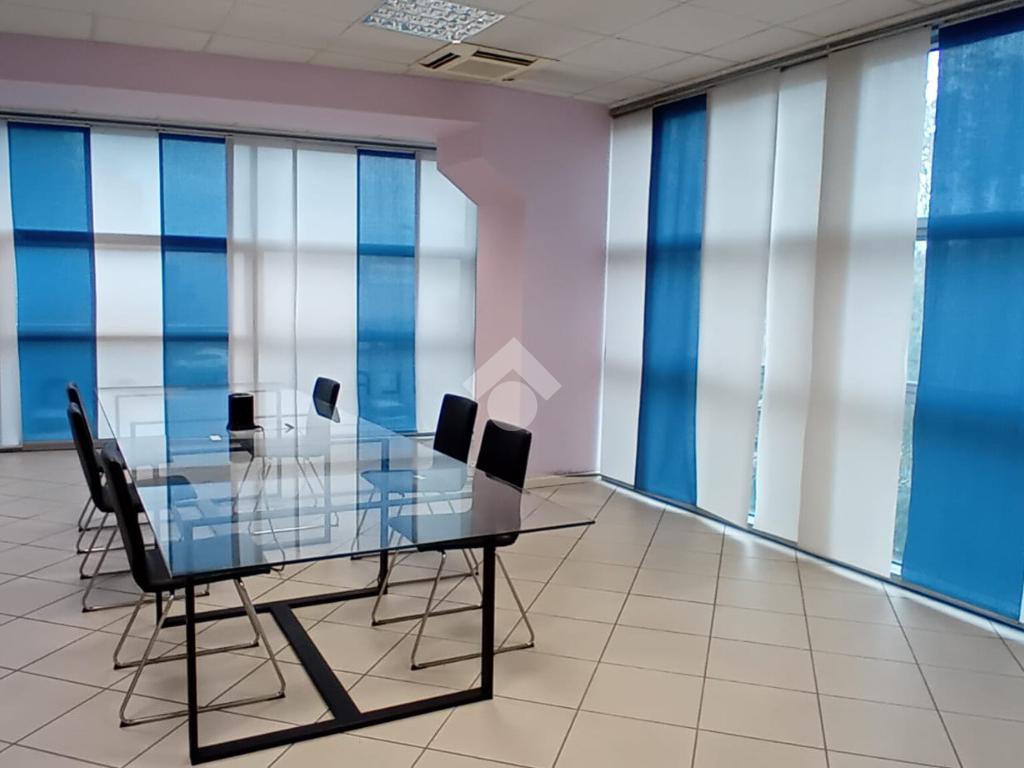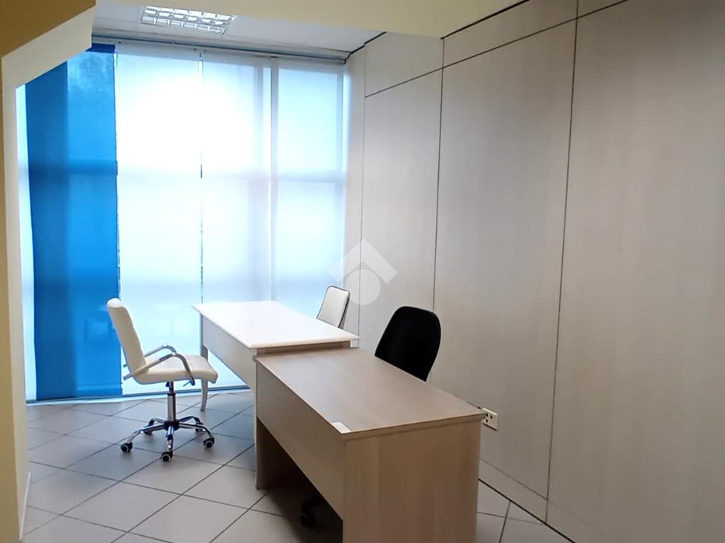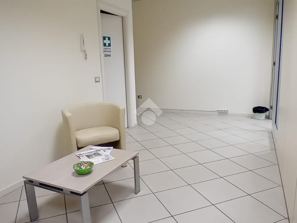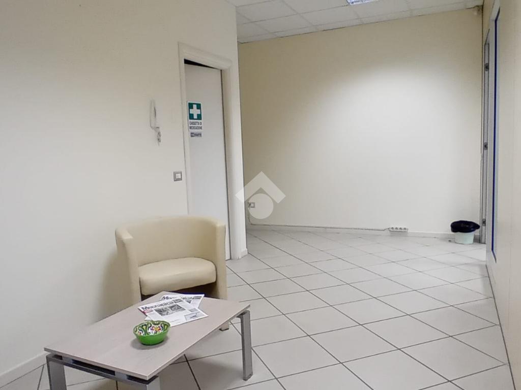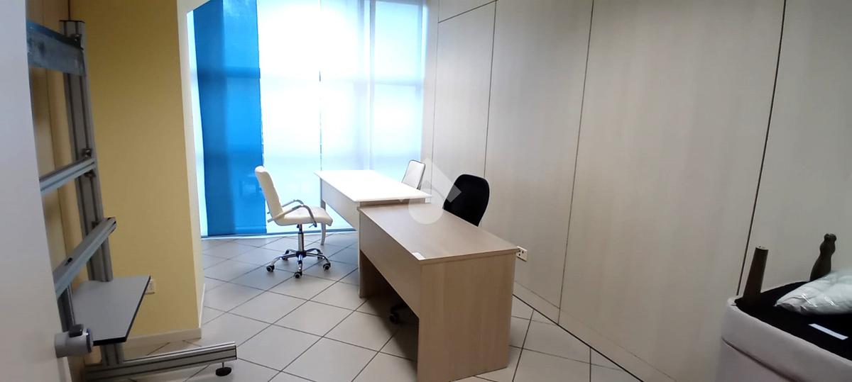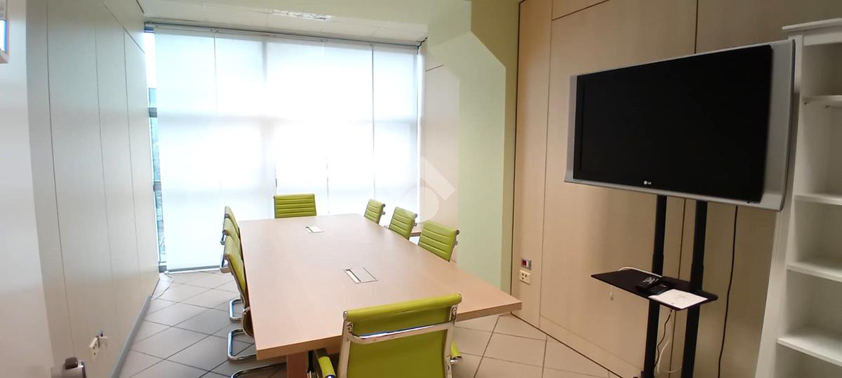 Ingresso nell'area reception, il corridoio collega i quattro ampi uffici e la sala riunioni. Servizio igienico con antibagno.
