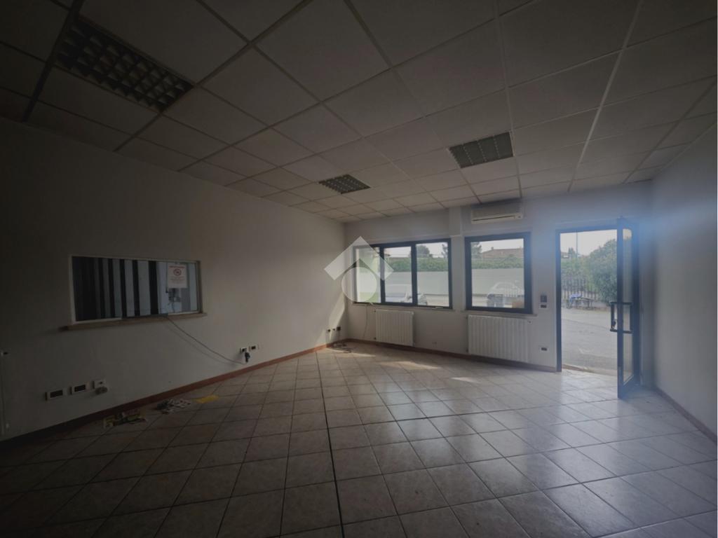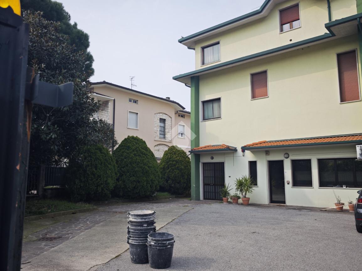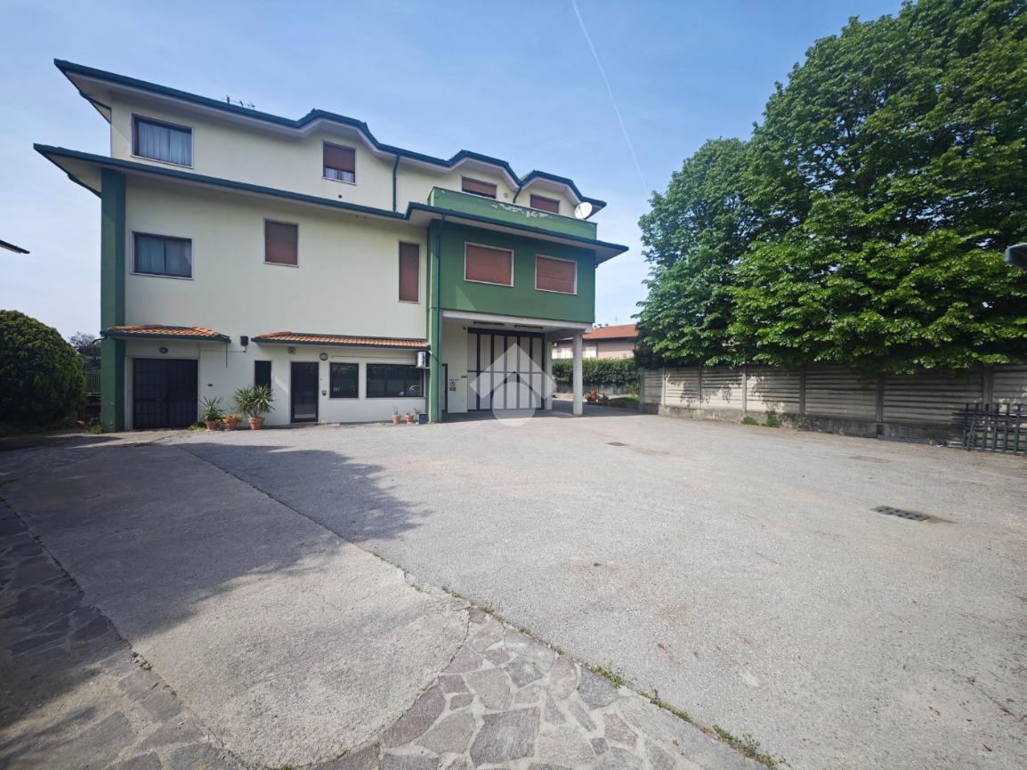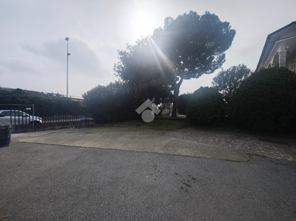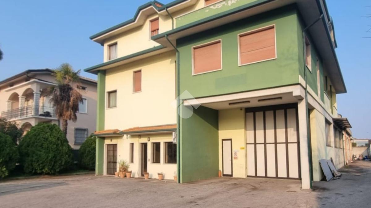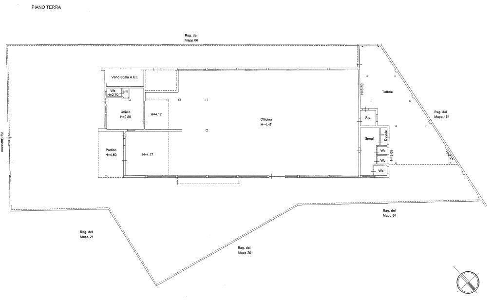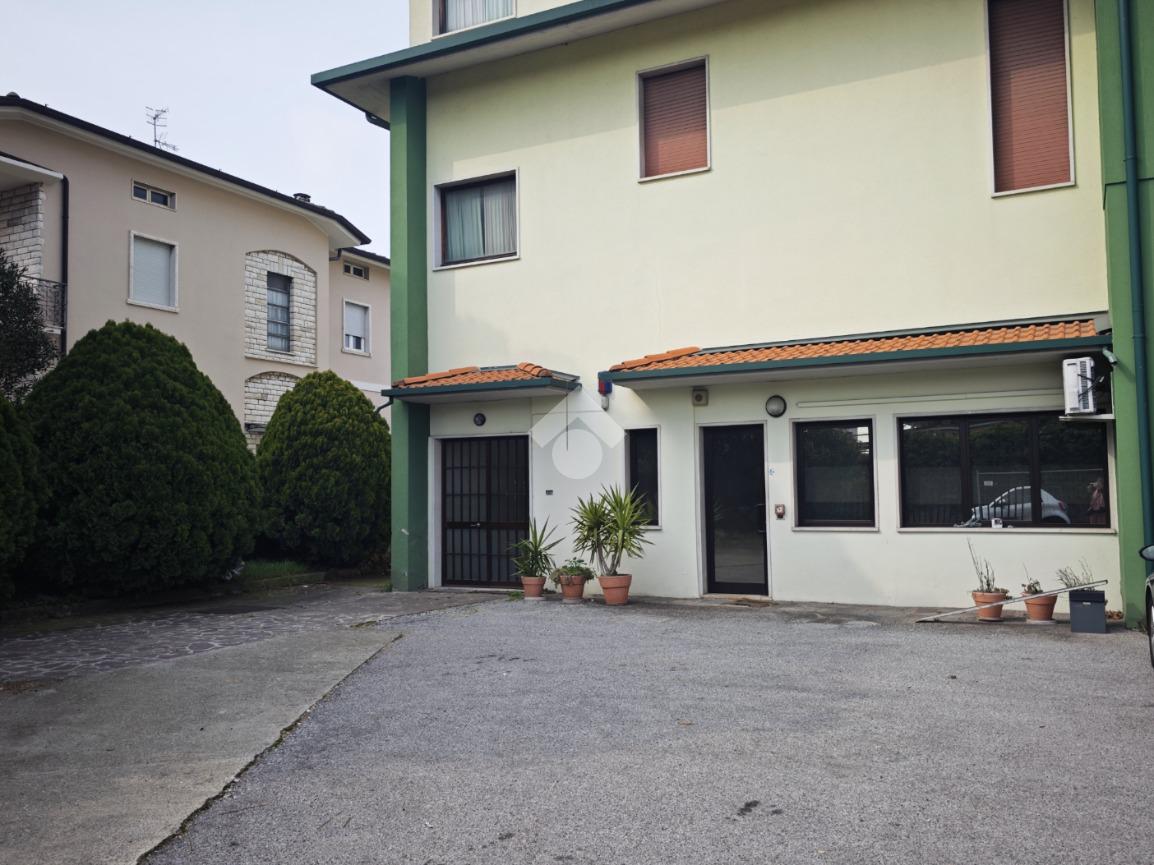 La soluzione dispone di due ingressi carrai, un ingresso pedonale che conduce agli uffici e un piazzale privato di circa 800 mq che circonda l'immobile sui tre lati, sul retro è presente una tettoia.