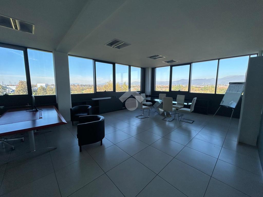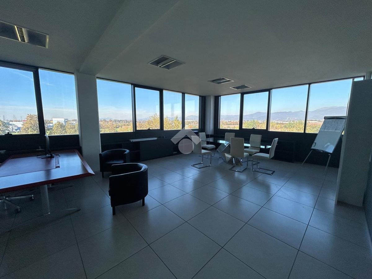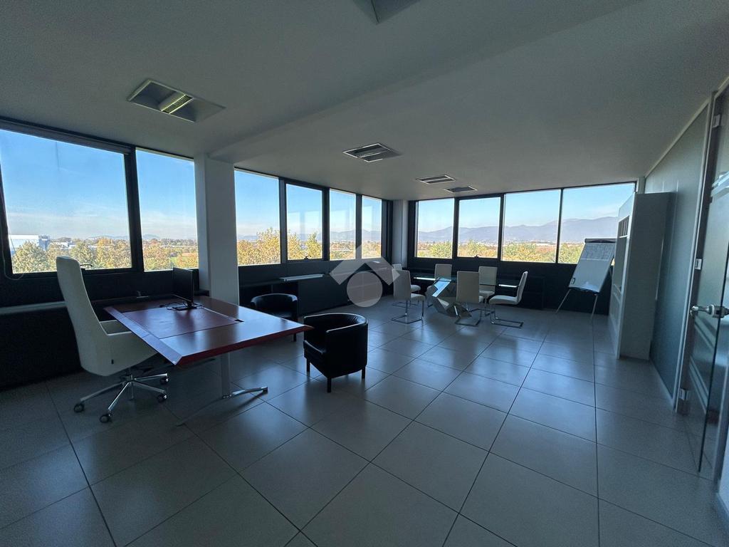 A Roncadelle, al quarto piano di complesso direzionale di grande impatto estetico, proponiamo in locazione ufficio con una superficie totale di circa 265mq che si sviluppa in sei uffici ed un'ampia sala riunioni, suddiviso con eleganti pareti vetrate, e quattro sevizi igienici di cui uno con doccia.